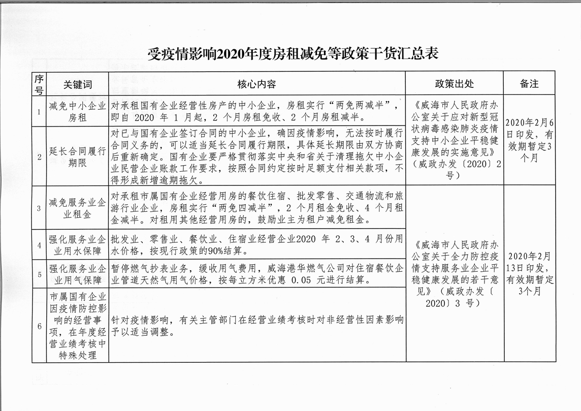 公 告 為全面落實(shí)“六穩(wěn)”、“六?!比蝿?wù),進(jìn)一步推動(dòng)國(guó)有企業(yè)房租減免政策落地落實(shí),現(xiàn)將《受疫情影響2020年度房租減免等政策干貨匯總表》及監(jiān)督投訴電話予以公告。承租戶如有需要投訴或反映的問(wèn)題,請(qǐng)撥打市國(guó)資委監(jiān)督電話5187518。