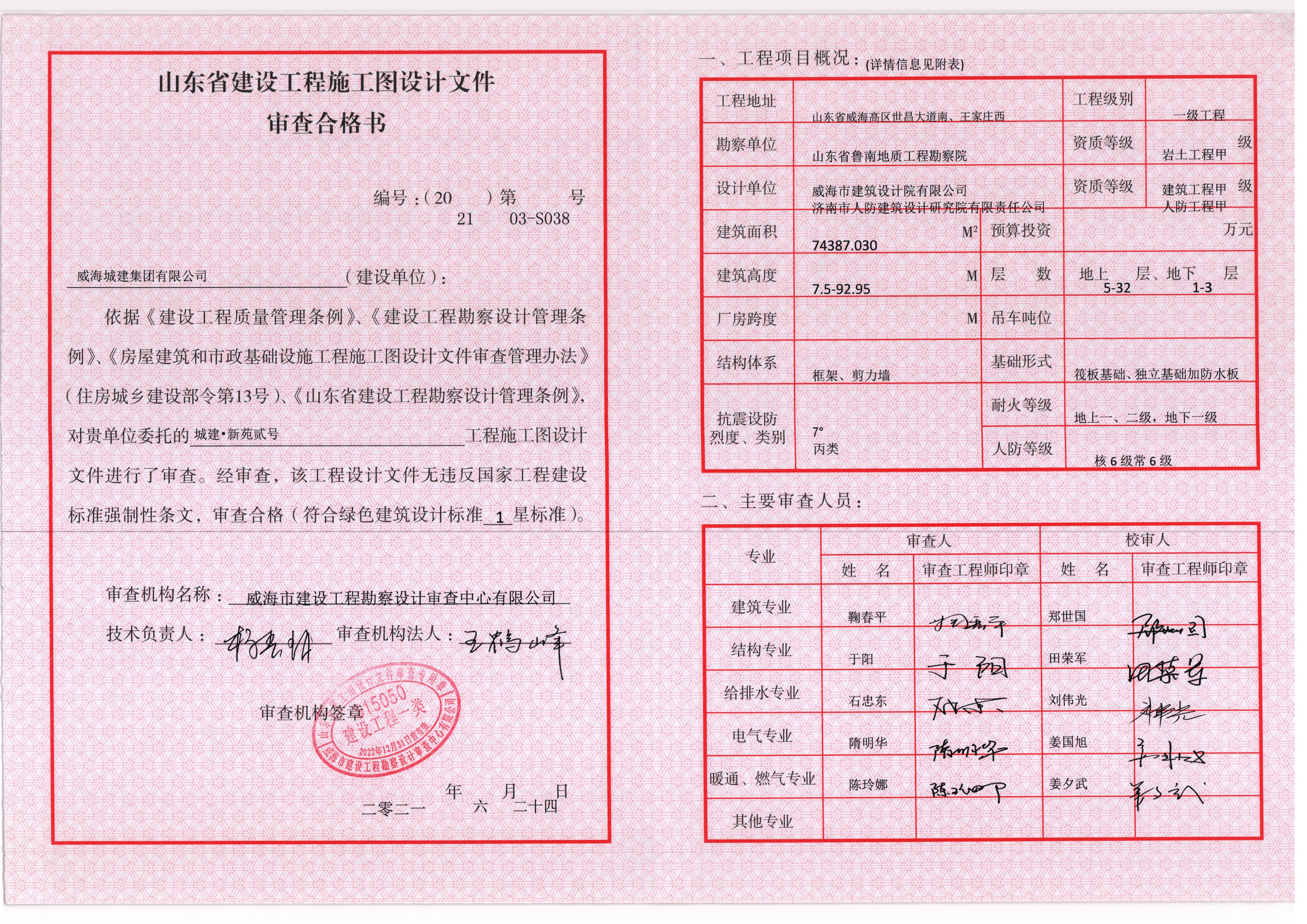 設計單位:威海市建筑設計院有限公司                 負責人:鄭顯利
