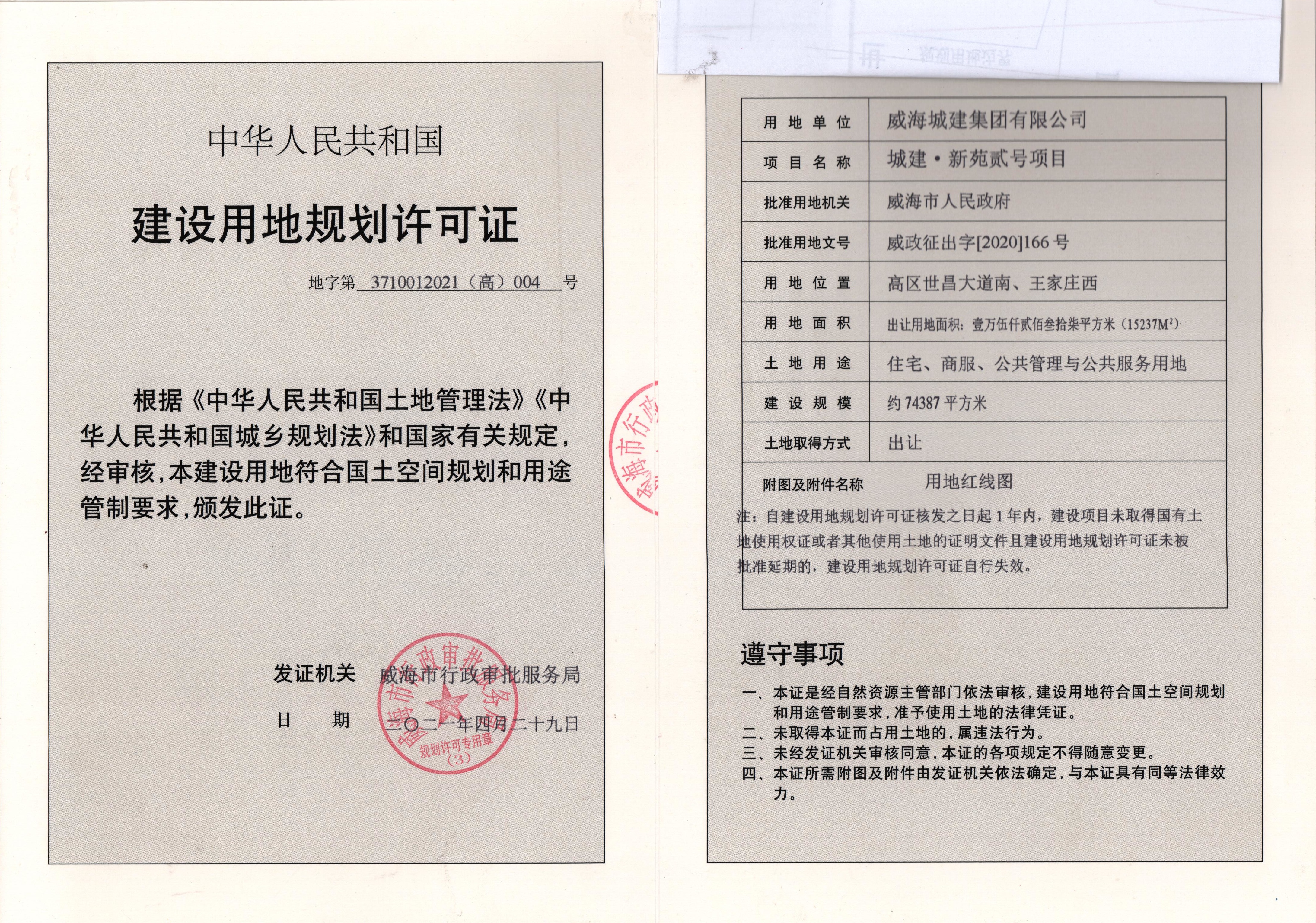 (4)建設用地規(guī)劃許可證