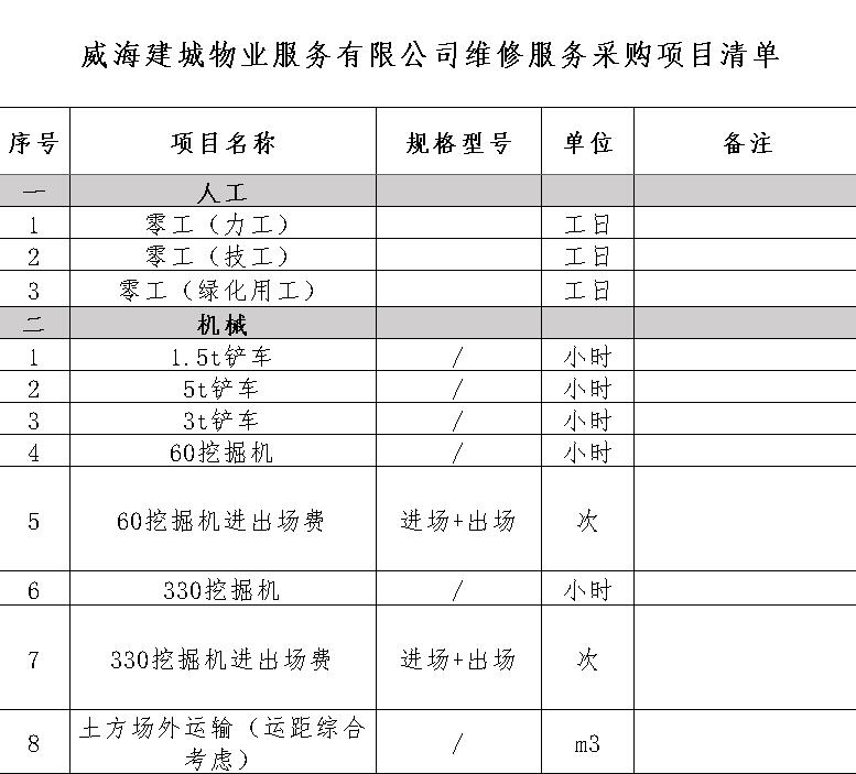 威海建城物業(yè)服務(wù)有限公司維修服務(wù)采購(gòu)項(xiàng)目